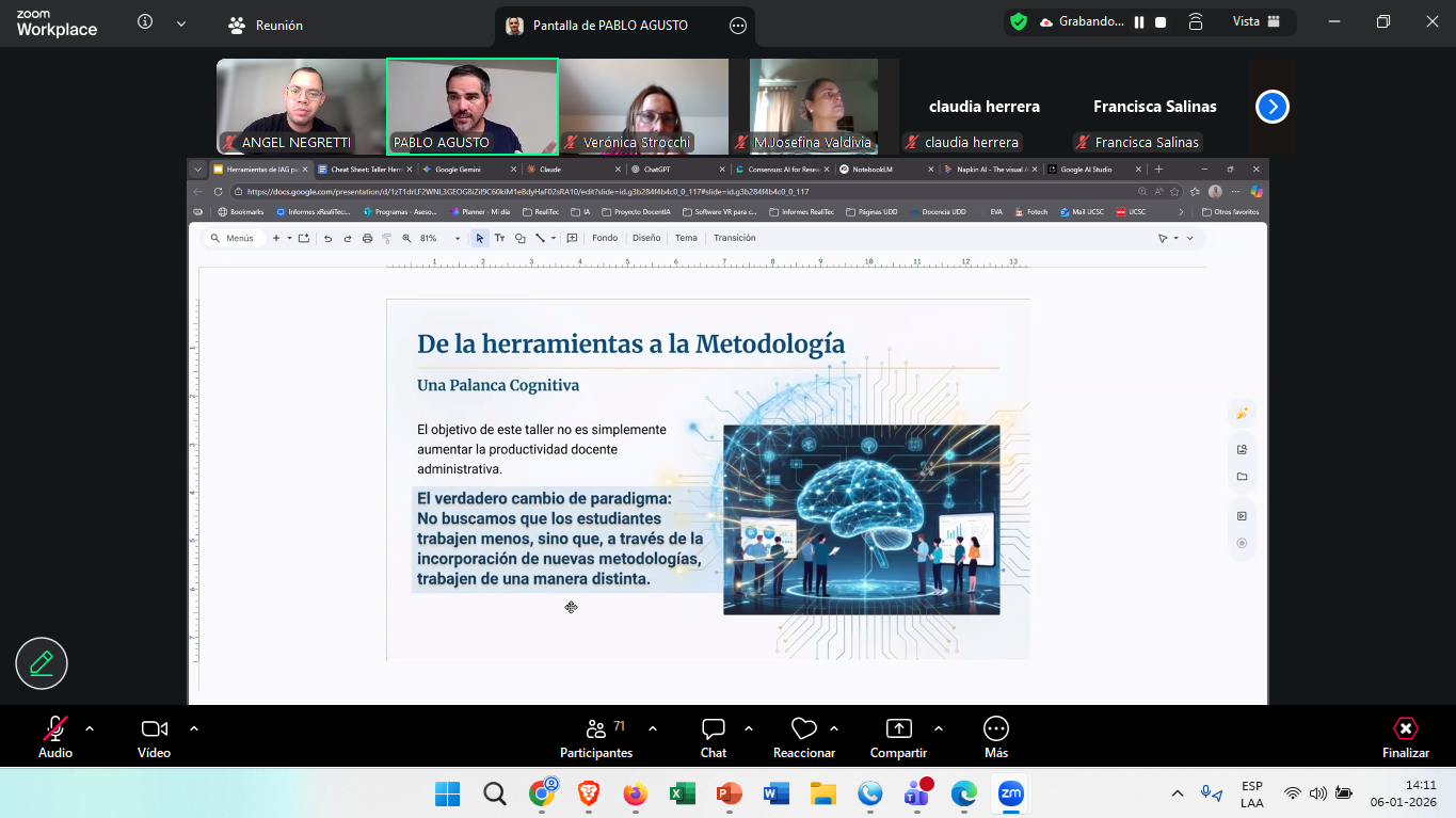 Este ciclo formativo marcó, además, el exitoso retorno a la modalidad presencial en determinados talleres, favoreciendo el intercambio de experiencias, el trabajo colaborativo y el aprendizaje práctico entre los participantes. Las temáticas abordadas estuvieron orientadas al uso de herramientas tecnológicas, metodologías activas y estrategias evaluativas, alineadas con los desafíos actuales de la educación superior.